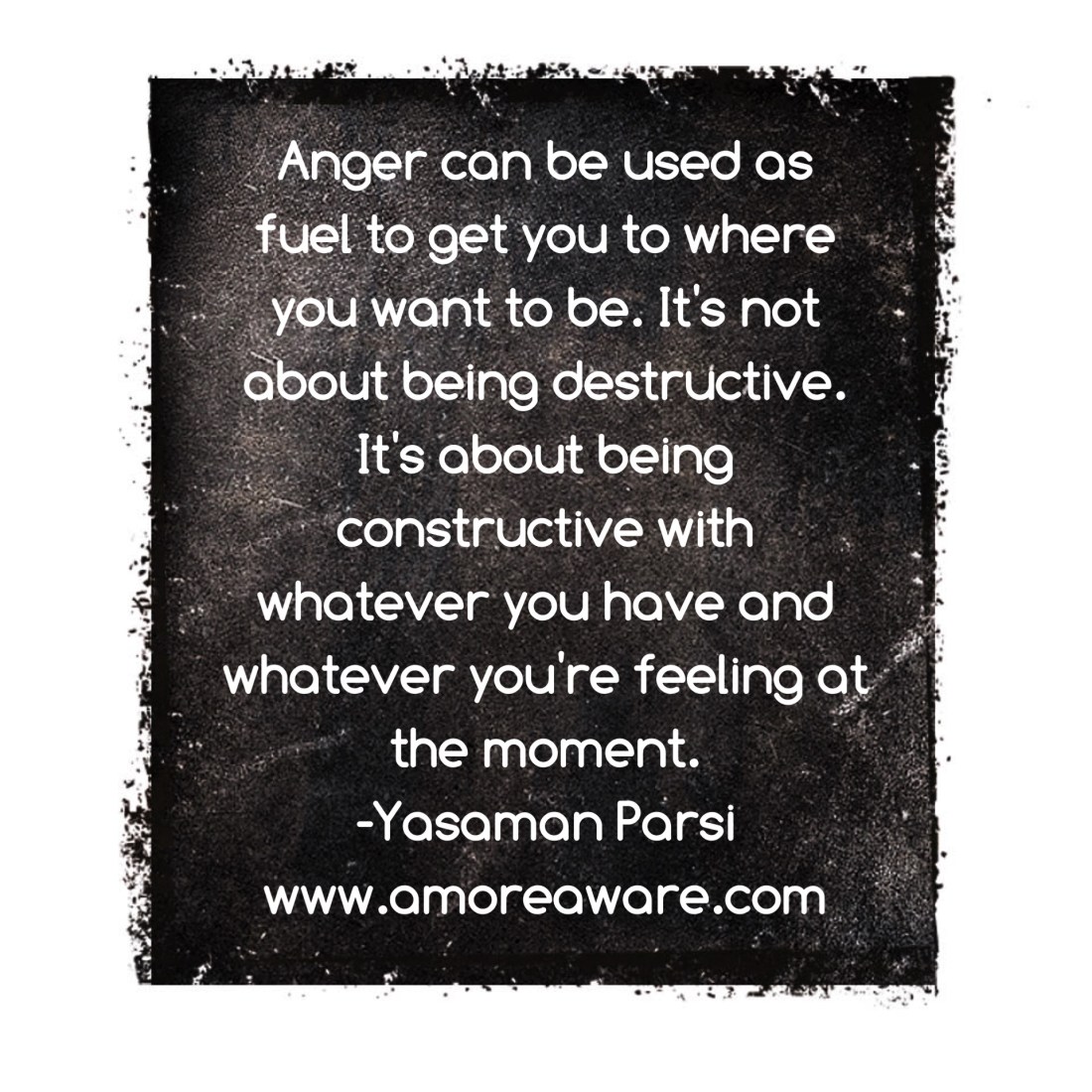 Can we try to accept anger for what it is and instead of dismissing it, channel it into something productive and life changing? This is a challenge I want to put out there to you. Instead of dismissing the anger you feel, channel its awesome energy and power into something useful in your life and try to make a positive change using your anger as fuel for your transformation. Empower yourself by telling yourself it’s okay to feel anger as long as you use it for good instead of destroying yourself and your relationships with others. Stop believing you don’t have control over your ability to take charge of your feelings. Feel your feelings, all of them. Don’t label them as good or bad. Just feel. And take the energy each feeling produces and channel it in a meaningful way so that you can make a positive difference in your own life as well as the life of the community in which you live.